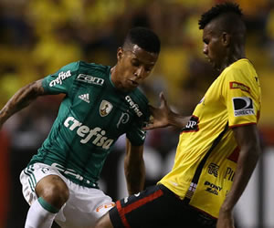 Antes do fraco primeiro tempo terminar em Guayaquil, aos 39 minutos Dudu finalizou de fora da área, fácil para o goleiro.