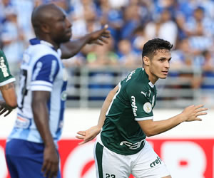 Com Jailson e Raphael Veiga de titulares, o Verdão iniciou o jogo tomando a iniciativa. Aos 4 minutos Deyverson sofreu falta perto da área, Victor Luis cobrou e carimbou a barreira. Aos 8 Hyoran recebeu laçamento longo, balançou na frente da marcação e cruzou para Veiga, que pegou de primeira, no contrapé do goleiro, que nem se mexeu: 1 a 0. Golaço.